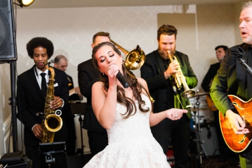 Photographer’s Remarks: “Jessica and Chris had sunshine and happiness at their Springtime Wedding. As I entered Jessica’s parents home love, smiles, and beautiful colors filled the room. What a fun bunch! “The girls were hanging out, chatting, having a bite to eat, and overall enjoying each other’s company. Hair and makeup already done, Jessica looked beautiful with her hair curled over her shoulders in a half-up half-down do and makeup that complimented her gorgeous eye color. Rebecca Zagha and Nicole Gougoumis did such an amazing job with dolling the girls up.” “From the details of the wedding to the arrangement in the flowers shades of blush pink, pales, and cornflower blue were scattered throughout. The bridesmaids wore long cornflower blue dresses that complimented Jessica’s bow strapped shoes. “After some downtime and conversation, it was time to get Jessica into her dress! She picked out a Morilee (style number 2674) dress from her aunt’s boutique, Antoinette Rose Bridal. My gosh this dress was beautiful and Jessica looked absolutely stunning in it! The dress was made for her, twirling around and showing off the beautiful ballgown, she could not stop smiling.” “The Ceremony was about to start, and guests were taking their seats filling up the church quickly. The groomsmen entered from the side door as Chris walked down the aisle to the alter. Chris looked handsome wearing a gray tuxedo and paired cornflower blue socks to match Jessica’s shoes and the bridesmaids dresses. One by one, the bridesmaids walked down the aisle, all the while teasing Chris a little bit. With no first look, this was Chris’s first time seeing his beautiful bride in her dress. Chris had the biggest smile on his face when he caught sight of Jessica. The couple did not lose sight of one another, their eyes remained mesmerized with each other. “Jessica and Chris are such sweethearts and their love is so defined and pure. The ceremony was memorable and organized with speeches from family, friends, and Father Anthony Testa. Cheering and shouts harmonized throughout the church as the bride and groom made their way down the aisle together hand in hand as husband and wife. Exiting the church the guests blew bubbles for Jessica and Chris to walk through and stop for a few photographs. It was a remarkable ceremony! Sunshine led the way as we headed to the reception.” “Their reception was held at The English Manor. Before entering we had to pause to take a few bridal portraits outside The English Manor, because the sun was in the perfect spot. Picture perfect couple, Jessica and Chris were glowing after their ceremony. Chris eager to get some food in his belly, we made our way inside the reception hall. The energy in this room was incredible! “The live band Brian Kirk & The Jirks sang and performed as the guests danced and sang along. It was a fun, loving, and energetic atmosphere. “Their reception had such yummy food and treats! Not only did The English Manor make such a delightful wedding cake, but also delicious treats for Jessica, Chris, and their guests to enjoy. The wedding cake had pink and pale flowers that led up to the cake topper that read ‘you’re my lobster’. The same color palette was spotted again throughout the reception with many more details that expressed the love this couple shared with their family and friends. Jessica and Chris surely brought sunshine and happiness on this memorable day.”About This Wedding