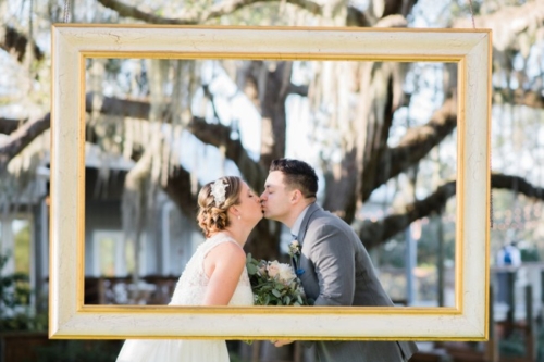 • Love the oversized picture frame photo prop idea! Such a lovely spot to setup in front of the giant tree in the background. Both the newlywed couple and guests no doubt had fun taking pictures with this one!