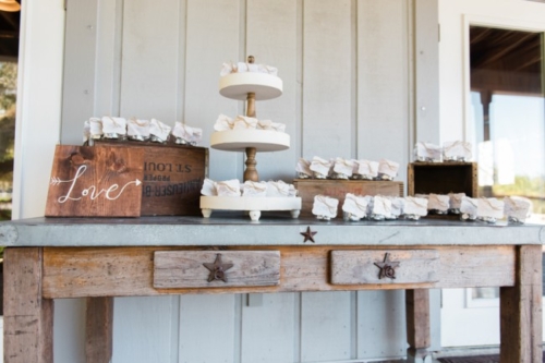 • A much needed drink dispenser fits in well surrounded by foliage and sitting atop a vintage looking table. Guests no doubt welcomed the thirst quenching reprieve from the squelching Florida sun!