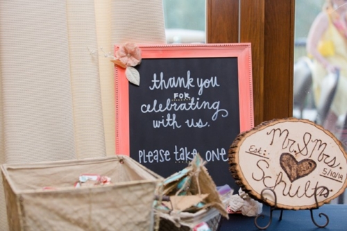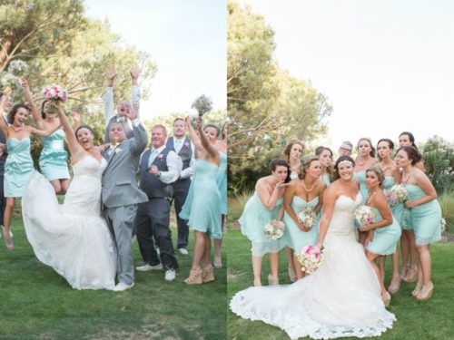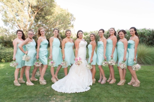 “We went with mint and coral colors with a shabby chic look and feel.”Describe the bride/bridesmaids’ attire.