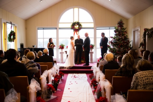 “The chapel itself was so adorable Jessica and Matt didn’t need to do much else to have a festive celebration. Their wedding was total DIY – Jessica and Matt have so many amazing friends who helped with EVERYTHING. From the flowers to the cake to the catering; everyone came together to make such a fantastic day.