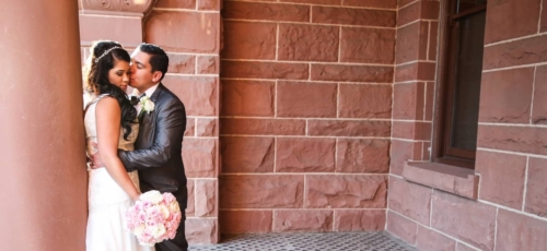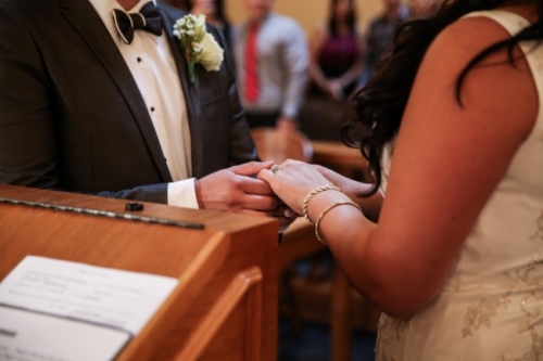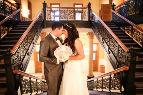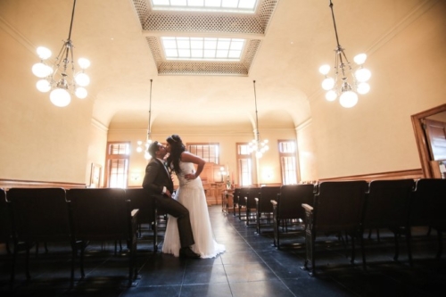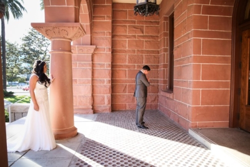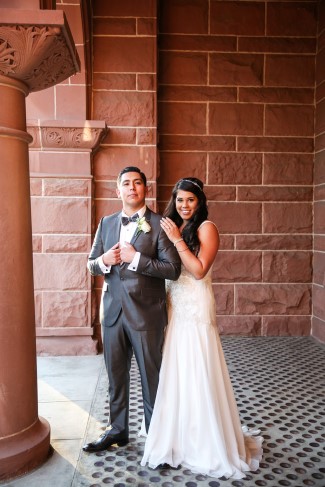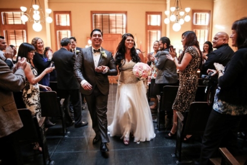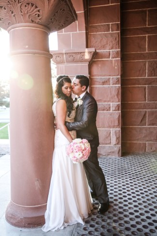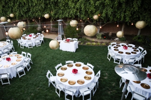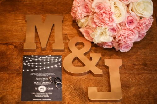 We love today’s wedding at Old Orange County Courthouse — a budget friendly day with a courthouse ceremony followed by an outdoor backyard reception with lots of gold decor accents.