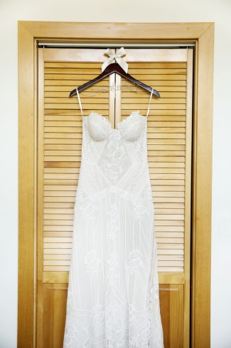 “My gown was so comfortable! It was a strapless, fitted gown with a medium length train and a beautiful, very unique lace overlay. I wanted to make sure my dress was functional and wouldn’t hold me back, and that it had its own look that wasn’t what the typical bride would have chosen. My dress is part of a collection that the designer calls Nomadic Love; it had the bohemian flare to it that I was looking for.”