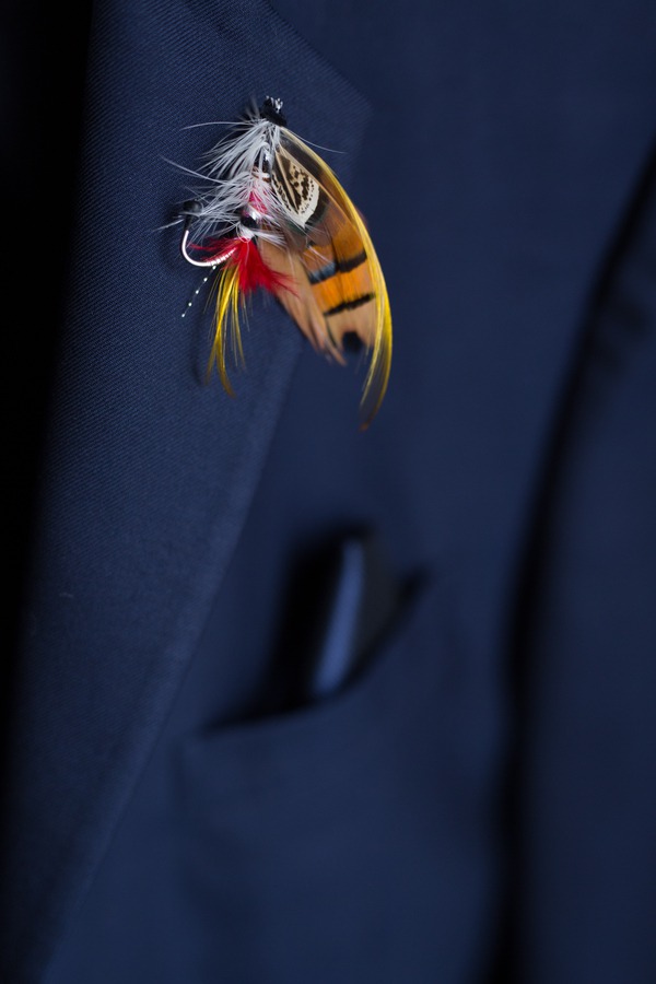 Photographer’s Remarks: “The first conversation I had with Jon & Jodie, was over the phone. I could catch a hint of an accent in his voice, and wondered if he was Canadian. Turns out he’d spent time in Moose Jaw and acquired an accent – which is still super awesome – and also has a special love for Canmore, Alberta. So needless to say, I was very thrilled to have been chosen to work with these two adventurous people. “The day of the wedding was the first day I met Jon & Jodie, but their kindness and positive vibes made me feel as though I’d known them forever. As the day went on, I just fell in love with their story. They’re both amazing people, and all the little details that they incorporated into their day just made it that much more special. “Both Jon & Jodie wanted to honor their grandparents on their wedding day, and I’m smitten with these details! They wrote their own vows, and created a folio, with photos of their grandparent’s wedding day inside, next to their vows! “Jon also built the ceremony backdrop, using a screen door from Jodie’s grandparent’s farm house. And finally, Jon’s grandfather had a gold & diamond bracelet, that by the sounds of it, was quite elaborate. Each of the grandkids inherited pieces of it, and you can now find part on Jon’s tie as his tie tac, and in Jodie’s wedding ring.” “Their favorite place is Three Sisters Mountain range in Alberta – so Jon sketched the landscape for their invitations. This mountain top scribe could also be found on Jon’s ring, and the custom cake from bettersweet bakery.” “The details! They exchanged gifts – Jodie gave Jon a wooden watch (WHAT!!) with a love note inscribed on the back. Jon gifted Jodie a poem. The story behind this, Jodie wrote Jon a poem in the beginning of their relationship – I’m pretty sure that’s the minute he fell in love with her – and so, he wrote her a poem to match hers for their wedding day. I had a difficult time just watching her read it! Such an emotional moment in a fun filled day. “Jon hand crafted fly fishing lures that doubled as boutonnieres for all the men, symbolizing his love for fishing, while Jodie gifted all the girls a beautiful rose gold bracelet with an intricate knot as the focal point.” “Jodie is a writer, and teacher, so a stop at the local library for a few fun photos was at the top of her request list. After taking care of the bridal party photos, the group stopped at their local favorite hangout for some craft beer in their personalized mugs, before making it back to the ceremony location.”