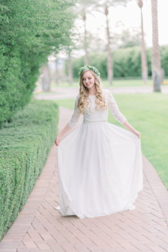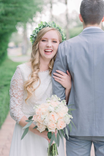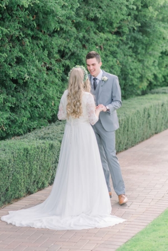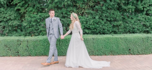 Q1: Tell us about your wedding “We knew we wanted a fairly traditional church wedding. We are not one’s to gamble with the weather and have our special day outside. “Our color scheme was set mainly from the beginning with the main colors being burgundy, blush pink, and light gray. What was so funny about choosing these colors is that I noticed how extremely popular they had become. ( As a side note, burgundy/maroon is a great color to go with any time of the year because it is so versatile.) “A common part of a Christian wedding ceremony is the candle lighting ceremony, where two small candle sticks are lit together onto one candle to symbolize the joining together of two people as they become one. We followed something similar with this tradition and included a unity rope in our ceremony. The rope is made of three chords which the bride and groom braid together. “The idea for this piece comes from Ecclesiastes 4:12 ‘And if one prevail against him, two shall withstand him; and a threefold cord is not quickly broken.’ The reason we chose this symbol was to signify not just the coming together of the bride and groom with each other, but the bride and groom coming together in unity with Christ who is the center of our marriage. Q2: Let’s talk wedding decor “I am the type of person who believes, less is more. Many of our decorations were not extravagant, but gave a simple and colorful touch to the buildings. “The church was simply decorated with Toole and flowers for along the aisle chairs. On the stage, we had an arbor decorated with flowers, and more material as well as two flower arrangements to the side. “The reception hall, was the area that had the most décor. The tables were covered with burgundy tablecloths. As centerpieces we had a, bud vase, candle, frame with a verse, and Hershey’s kisses all siting on top of a mirror bases. We were able to borrow a wooden pallet photo booth from the church which we decorated with flowers and a W/J symbol. What really made the entire reception hall come together were the lights that were beautifully strung along the ceiling . “The church had put on a Christmas banquet a few weeks before our wedding and they had put the lights up all around the ceiling; they asked if we would mind having them up during our wedding. (Um, of course not!) “Basically all of our wedding décor was DIY. Pinterest, mom, aunts, and ladies in the church were all helpful resources in making the décor come together. Many of the items we used were borrowed or given to us by people that simply didn’t need the materials. Q3: What were the florals like in your wedding? “I had flowers everywhere! When I first started planning my wedding, I knew I wanted a lot of flower décor. We had flowers on the aisle seats, the arbor, the guest tables, the lobby, the photo booth, the bridesmaid dresses, my dress, I even had a greenery crown as my head piece. “Flowers were the center of nearly all my decorations. All the flowers we used were fake, except for the bridal bouquets. However, we were still able to use fake flowers that were good quality.” Q4: Did you personalize the day in any way? “The main thing we did to personalize our wedding was write our own vows. Writing your own vows is not for every couple, and it is definitely a lot of pressure. For my husband and I, we really wanted to communicate specific promises to each other that reflected our faith and the Biblical picture of marriage that we were entering into. Although the vows were to each other, we later realized what a joy our guests experienced hearing us read our own vows.” Q5: Let’s talk fashion “Again, we were going to a simple, but elegant look. The bridesmaid dresses were a beautiful, knee length, burgundy color, made with a with lacey flower pattern that gave it a more elegant look. I tend to be more practical when it comes to fashion, so when choosing the bridesmaid dresses, I tried to find something that they could wear again for church or another special occasion. “My dress had a similar look. The ivory dress had a flower, lacey pattern at the top, with lace flower sleeves. At the waist it was comfortably fitted and we added a sparkly sash piece so it wouldn’t look to plain. The skirt part may have been my favorite because it was made with 4 or 5 layers of flowing chiffon. The way that it flowed made me feel like a Greed Goddess. “We had a slightly easier time choosing the Groomsmen’s look. To compliment the burgundy, we had the men in a tailored, 3 piece, light gray suit. I have to say, the Groom looked really cute.” Q6: How did you meet? “Will and I met at church over 7 years ago when we were both in high school. Unknown to me, he had a crush on me from the moment they started attending the church. “We were friends throughout high school, but not close friends. All of high school, Will never mentioned having any interest in me, and I was very oblivious to the fact that he did. “The night before I left for college in California, he finally told me that he liked me and asked if we could started getting to know each other better. We started dating that summer and dated for three years while going through college. During that time, I transferred back to a college in Arizona. “Will is pretty good about keeping secrets, so the time leading up to the proposal was subtle. One of our favorite spots to spend time together is by the fire in his parents backyard. This is where he decided to pop the question and it totally took me by surprise for two reasons. “One, I was not expecting him to propose until maybe the summer, and two the ring was huge and absolutely gorgeous! No joke, I was hyperventilating for a few minutes and barely managed to shout out a “Yes, I’ll marry you!” “His sister videoed the proposal and then later my family came over and we all celebrated, it was a very sweet memory.” Q7: What was the most anticipated or special moment of your