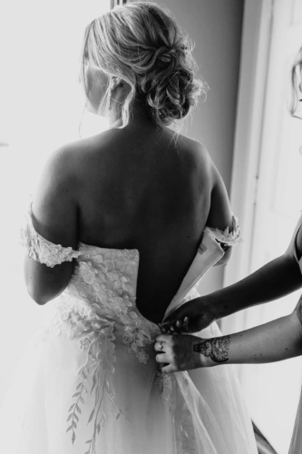 Couple got ready at a hotel, then traveled to Strathearn. Couple chose not to see each other before the ceremony and the groom’s reaction was very emotional. Couple was long distance with the groom in the Military so they had an emotional ceremony at finally being together. Lawn games and cocktail hour, then a barn reception.