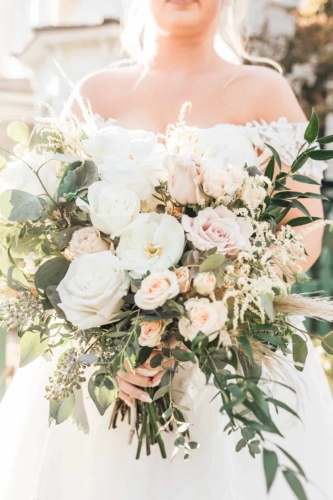 Memorable details were the photos of loved ones who had passed on. The venue is a historical park with different historical buildings preserved there. The original St. Rose of Lima Church is featured in the photo of the stained glass window and the photo of the bride looking at herself in the mirror.