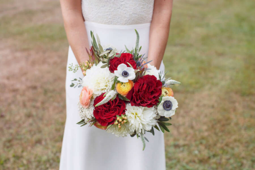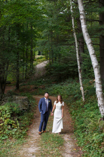 Photographer’s Comments: “We had a wonderful time spending the day with Julie and Tim documenting their intimate Quechee VT farm wedding! “These two had the genius idea to rent a large home via AirBnB (the Curtis Hollow Farm) near Woodstock for the wedding festivities. Friends and family could stay at the house together, creating a memorable wedding weekend! “Julie and Tim said their “I do’s in a field behind the farm house under a rustic grapevine arbor. “A reception at the Simon Pearce Glass Factory followed, and guests were treated to stunning sunset views of the Ottauquechee River. “From the romantic flower crowns that Julie and her bridesmaids wore, to the stunning modern floral centerpieces at Simon Pearce, Petals Floral Design knocked it out of the park with their creations. “The wedding reception at the Simon Pearce Mill Restaurant had such a simple and clean feel. The glassware was of course, breathtaking.Julie had several favorite things about their wedding — one being able to stay in the Curtis Hollow Farm house with her closest friends for the weekend. “Another favorite part of the day was how well Mother Nature cooperated. Despite the rainy forecast, the sun came out just before their outdoor ceremony!”Gallery