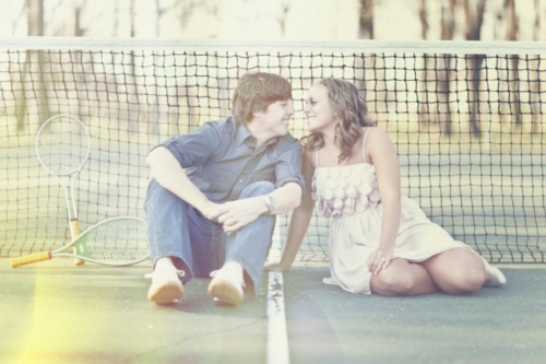 Growing up we both played a lot of sports. In fact, most of the year was either spent in a gym or out on a field. So when we were sent this fun tennis themed engagement session from Glass Jar Photography we were thrilled. Kaitlin and Greg both played tennis (Greg actually won a national championship) so it was only fitting that they took their love onto the courts. Don’t you just love Kaitlin’s dress? You can find it at Lulus. Can’t you tell that Kaitlin and Greg are a “perfect match”? hehehehe (we crack ourselves up)Gallery