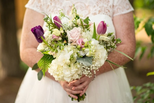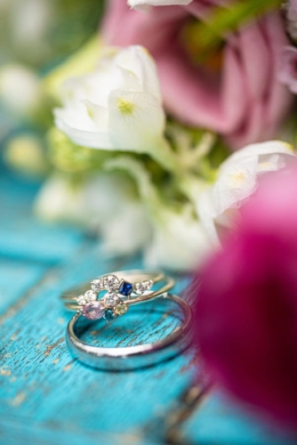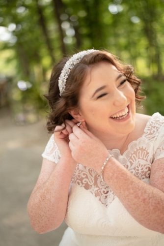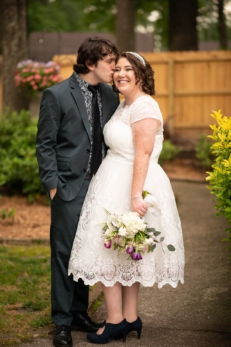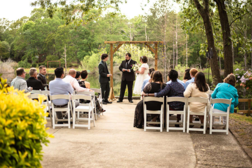 Q1: Tell us about your wedding! “There was not a specific theme or color behind the idea of my wedding, but rather a feeling. I wanted it to be a family affair, with a small wedding, good food, and a relaxed atmosphere. I wanted the space to feel bright and colorful, so I had loads of flowers from the farmer’s market in Raleigh. I did not choose any specific flowers, I focused on bold colors, textures, and differentiated sizes.” Q2: Let’s talk wedding decor “The bulk of the wedding decor was based on the flowers. I wanted the focus to be on the family and connections people could continue to make. I knew I could achieve this with a more relaxed atmosphere. The food was also a striking visual point for the wedding. Each table had a different food focus with different props. For example, there were cranes floating by a three-ball meatball dish that was nestled in a bowl. Individual mac-and-cheeses in cast iron bowls or whole carrots in planters filled with hummus.” Q3: What were the florals like in your wedding? “I used flowers as the focal part of my decorations. I had a bouquet from a beautiful flower shop in Raleigh. It had seasonal flowers and loads of flowers native to North Carolina. My bouquet was comprised of greens, nudes, and blushes.” Q4: Did you personalize the day in any way? “There was a massive rainstorm forecast for my wedding, everyone was nervous. My reception was to be held outside with a view of the lake. Backup plans were made and we decided to stick with the outdoor option. It was so muggy, the air was thick and sticky. “During the wedding and the pictures after, I felt that my face of makeup was just melting off. I had wonderful photographers who reassured me that my face was still intact. “All of the sudden, it started to rain, while myself, the groom, and the photographers were outside. I could literally feel the weight of the humidity lift, I felt that I could breathe. We got wonderful and romantic pictures with the rain. “I’ll never forget the feeling of rain and watching the raindrops hit the water.” Q5: Let’s talk fashion “My wedding dress was short, around knee-length. I tired on full-length dresses, but they felt very stuffy and too serious. My dress had beautiful neckline and I had teal-ish high heeled shoes. “Jeremy, the groom, is very fun and far from ordinary. Originally, he wanted a full bright teal or green suit, but ended up with a forest green suit with a button up shirt with flowers. I loved his suit, but hated his tie, but only because it was a zip-up tie. Now it just makes me laugh thinking about his little zip up tie.” Q6: How did you meet? “Jeremy and I first met in Berlin, Germany on a study abroad trip during our time at University. I was enamored by his amazing laugh and instantly smitten with his unique look and maroon hair. We spent time in Berlin getting to know each other better and upon returning stateside immediately began pursuing a relationship. As years passed so did important live events that brought us closer together and in 2015 we moved in together. In the Spring of 2017 Jeremy brought me to a beautiful mimosa tree in small unincorporated parcel of land near Wilmington, North Carolina and proposed, afterwards he would let me know that the earth we stood upon was actually part of Berlin county, North Carolina. He had taken me back to Berlin to propose, I was absolutely in love with him and immediately accepted his proposal, it is one of the happiest days of my life.” Q7: What was the most anticipated or special moment of your wedding day? “Looking forward to my wedding day, the moment I most anticipated was the exchanging of vows. As Jeremy and I had prepared our own vows I could hardly handle the excitement surrounding discovering what he had written, and finally presenting him with my own feelings.” Q8: Do you have any wedding planning or marriage advice that you’d like to share with other couples planning their day? “For wedding planning, I would encourage couples to keep it simple. At the end of the day, the goal of any wedding should be a lifelong commitment. Don’t waste money in the unnecessary items that you will literally forget about in a week.”Gallery