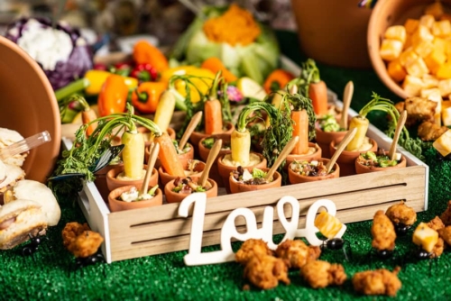 Photographer’s Comments: “Katie and Jeremy have an insanely creative family who helped them put together one of the most imaginative wedding spreads that we have ever photographed. “There were so many details that we could have spent the entire wedding just photographing that. Their flowers were from a local farmer’s market and Jeremy’s mom and sister created all of the food based works of art. It was an evening full of color, flavor, whimsy, and fun.”About This Wedding