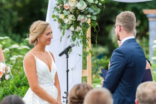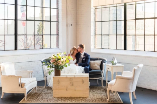Q: Tell us about your wedding! “Our main concern with our wedding day was that it be accessible, convenient, and fun for our guests, while still reflecting our values and personalities. We both love the outdoors and being in nature, so we decided to have a summer wedding at the Botanic Gardens. “We chose the Botanic Gardens because it was centrally located in Denver, and because it is beautiful! We also live in the area, and Nate proposed in Cheeseman Park. We didn’t incorporate any religious or cultural traditions into our day, but we did use lemoncello instead of champagne for the toasts, because Kaitlyn’s family loves lemoncello so much!” Q: Let’s talk wedding decor “The décor was largely done by Project Floral, and we were incredibly happy with how it turned out. The Botanic Gardens and Moss Denver are both so beautiful that they didn’t require much decoration. “Kaitlyn’s father did make the trellis, and we moved the trellis from the ceremony to the reception to add in some depth to the sweetheart table. We also used our own champagne glasses to drink out of so we could keep them and toast to our wedding on our future anniversaries- something Kaitlyn’s parents do every year.” Q: What were the florals like in your wedding? “The florals in our wedding were quintessential Colorado summer, with a more neutral palate with accents of peach and light green. Roses, succulents, peonies, and some greenery were all featured in our bouquets. The flowers really set the mood for a romantic, yet quirky wedding. Q: Did you personalize the day in any way? “We tried to make the day as personal as possible to really let our style show through on the day. Instead of having a plated meal, we decided to do several food stations: a mac and cheese bar, a taco stand with a condiment bar, and a traditional serving of beef and roasted veggies. “We also made champagne available to our guests after the ceremony, because we couldn’t imagine anything nicer than wandering the Botanic Gardens with a glass of good champagne in hand! Kaitlyn’s family friend (who went to college with her father) officiated the wedding, and brought in a personal touch to the ceremony. We also had two of our close friends do readings at the ceremony, and we spent a lot of time picking out exactly which readings we wanted to reflect our relationship, and our marriage. At the reception, we had a guest map for our guests to sign in lieu of a guest book. We initially bonded over a love of travel, and some of our favorite memories together are in a different country! Further, our families are full of wine aficionados, so we made sure to offer a variety of wines for every preference. Q: Let’s talk fashion “I didn’t go into dress shopping with a very clear idea of what I wanted. I wanted a dress that was flattering, would be comfortable all day in the August heat, and was a little unique. Because of my lack of vision, it took about 4 wedding dress stores to find the one I ended up with! “The dress was Hailey Paige, from Nordstrom, had a low v neck, exposed back, and full skirt. The most unique part of the dress was the fabric, which was striped! It sounds bizarre, but I loved it. With such an interesting dress, I tried to keep the rest of the look simple- flat gold sandals (with some cushion), a bracelet, and drop earrings. “Nate decided to use a blue suit he already owned. It fit him perfectly, and he thought the blue would be more appropriate for a summer garden wedding. We aren’t really formal people, so a tux would have been overkill for our day.” Q: How did you meet? “We met at a party at Nate’s house. Kaitlyn was friends with one of his roommates, Kelsey, and had heard about this new roommate from Kelsey a couple of times. When Kaitlyn showed up at the party, she met Nate, and we stuck together the rest of the party. So much so that the other guests thought Kaitlyn was Nate’s friend to begin with! “We dated for a couple years, and one day Nate suggested that they do a date night picnic in Cheeseman Park with a nice bottle of wine from their recent trip to Napa, and some sushi. Nate wasn’t drinking his wine, so Kaitlyn asked if he’d rather go home and have a beer there, and Nate agreed, tossed back his wine, and asked if Kaitlyn wanted her present. He had glued the pages of the book together, cut out a heart shape, and tied an engagement ring into the book. Kaitlyn was in shock, and immediately burst into tears and the rest is a blur!” Q: What was the most anticipated or special moment of your wedding day? “We decided to write our own vows for our ceremony, and that was by far our favorite moment of the day. It was incredible to be able to reflect on the type of marriage we wanted, and to be able to make our own promises to each other as we started married life together.” Q: Do you have any wedding advice to share with other couples planning their day? “The only advice we could offer is to take your time with the planning process, and to make sure to hire good professionals! Our day-of coordinator was incredible, and she helped us solve a variety of issues we had never thought through before. Also, pick a good bottle of wine, drink it, and then dance around the apartment whenever you start thinking that you should have eloped.”Gallery