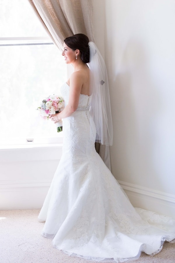 “My wedding dress was by Mary’s Bridal in Huston, Texas. It has a sweetheart neckline, all over lace detailing and form fitting silhouette and was exactly what I had envisioned. The quality, sophistication and detail of my gown was outstanding. It was also a plus ordering from a US company; my gown arrived exactly on schedule!