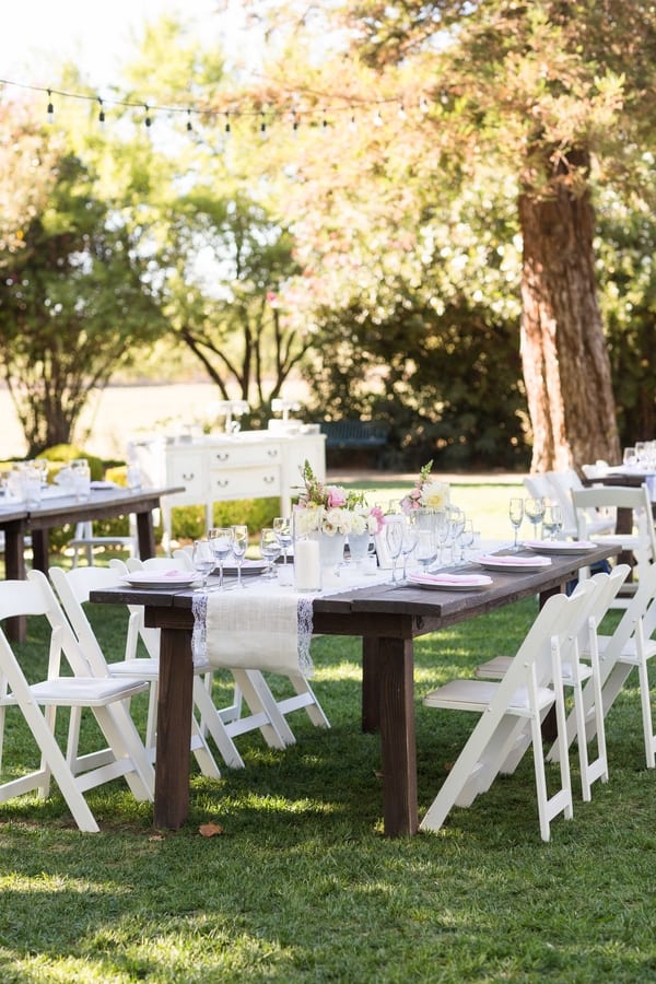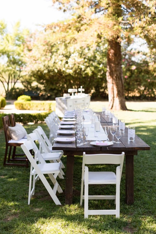 I am excited to share a lovely outdoor wedding ceremony that took place underneath a big tree at the Inn at Park Winters.  The ceremony location was perfect because it was conveniently located right  next to the properties beautiful Victorian Mansion, which provided shade from the hot California summer sun for the wedding guests.  And with such beautifully kept grounds and photo opportunities, this wedding venue is a photographer’s dream come true. A wonderful backyard family style wedding that embodies elegant masked as casual!