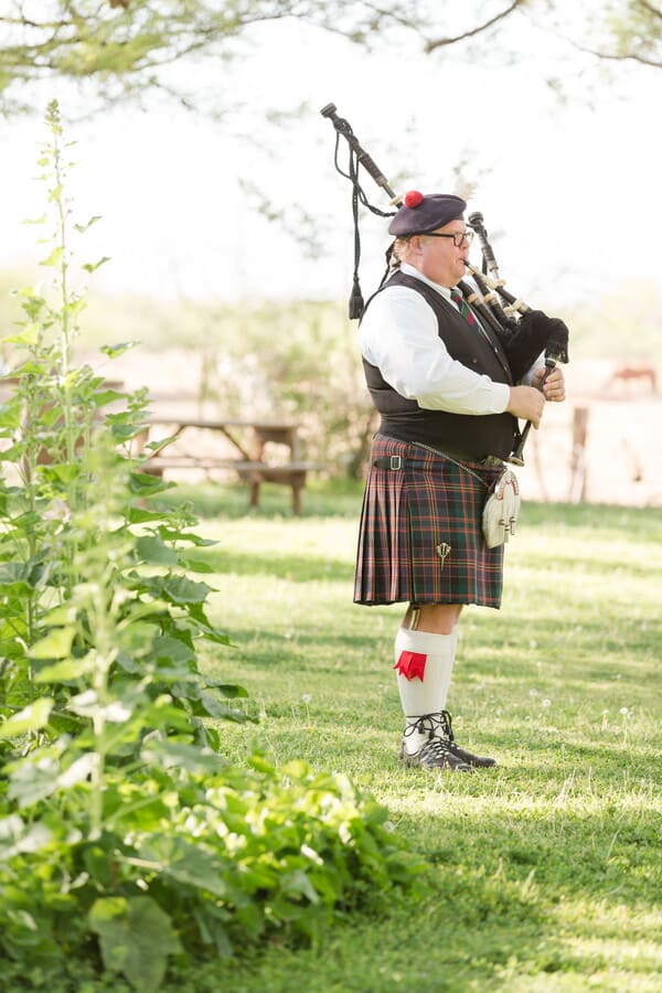 Photographer’s Comments: “Agua Linda Farm is a gorgeous wedding venue that looks like it’s straight out of the midwest, but in fact, it’s only 45 minutes south of the dry, desert landscape of Tucson, Arizona. And Spring is the best time of year to visit the farm because everything is in full bloom! “Ross and Kara’s wedding was sweet, simple, and intimate. Their soft color palette of corals, pinks, and greenery flowed seamlessly as if they were all picked right from the gardens at the venue. “Ross is from Scotland and I love how much he incorporated his culture into their wedding. He wore the kilt, sporran (which conveniently held a flask!), kilt pin, flashes, and the Sgian Dubh (a.k.a. the hidden knife). And during the reception, he got on the mic and began to coach all of the guests in participating in the Scottish group dances. At first, some people were hesitant and didn’t know quite what to do, but after just a few minutes of practice, the whole lawn was filled with their friends and family dancing with each other! “Their wedding day was filled with so many beautiful details, but–even more importantly–beautiful moments and lots of love. It was an absolute honor witness and capture their celebration!”About This Wedding