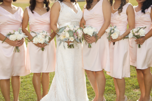 “I wore a champagne colored trumpet gown that had beaded lace all over. I bought my gown from David’s Bridal. I wore plain ivory open toed flat shoes by Nine West – but I added beading detailing.”