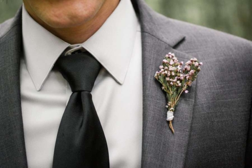 “We have both always loved everything we can get in gray. It’s how we decorate, how we dress, and we thought it would be unique and personal to have that be the color we both wore for our wedding. I had a hard time finding a gray dress but stumbled upon the perfect one on an online-only store. We mixed and matched different pieces for Jonathan until it looked perfect, all in gray.”