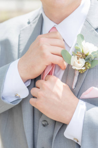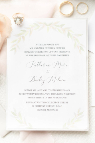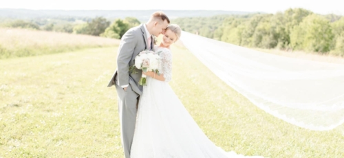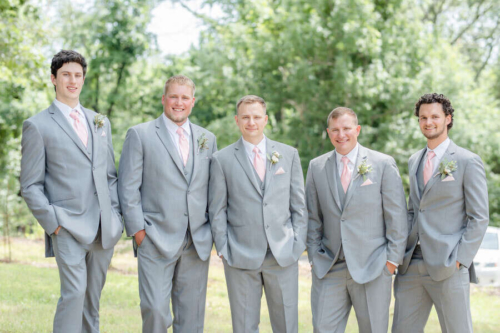 Photographer’s Comments: “Kate and Bailey (who are middle-school sweethearts!!) had the absolute perfect wedding day that felt as if it belonged in a Nicholas Sparks romance novel! Their Hermann Hill summer wedding began at a small stone church in the country and ended with sunset pictures on the bluffs of the Missouri river. “Kate has been dreaming of her perfect wedding since she was 10 years old–down to the very last color and detail, and it never changed. Peachy blush dresses for her bridesmaids and light gray tuxes for the guys. The most gorgeous peachy blush roses and soft greenery in the bouquets just oozed the romantic summer wedding vibe! 10-year-old Kate’s wedding day dreams came true, and I would venture to guess it was even better than she imagined! It was stunning! “Not only were all of her details beautiful, but also the sentimental touches were so intentional throughout the day. Generations of Kate’s family (both her parents and grandparents) were married at the same small stone church, down a long gravel road and nestled in the hills of Hermann, Missouri. Kate wore a gorgeous ring given to her by her grandmother–who also gifted her a horseshoe-shaped brooch that had been passed down since the 1700s!!! And Kate’s new Maggie Sottero dress and cathedral length veil tied the antique and ornate details together with an elegant and romantic touch. “Kate and Bailey had a beautiful wedding day surrounded by friends and family in a quaint venue that was so special to them. It was an absolute joy to photograph their wedding and it is a day I’ll never forget!!”Gallery