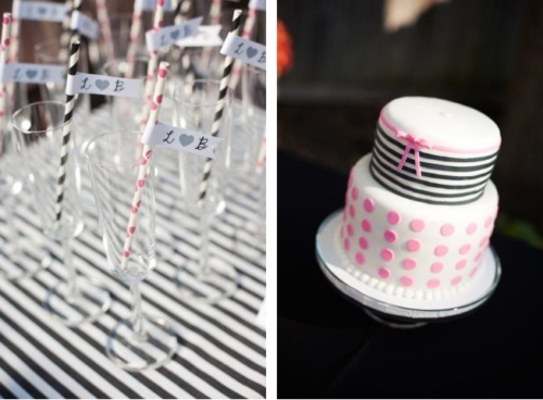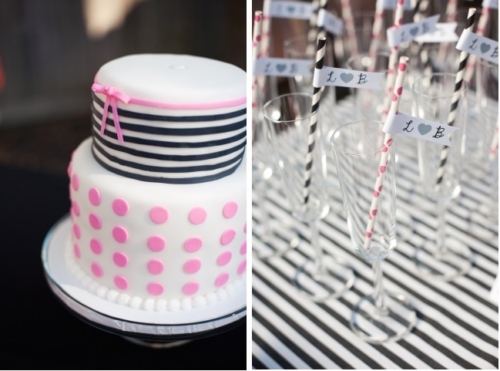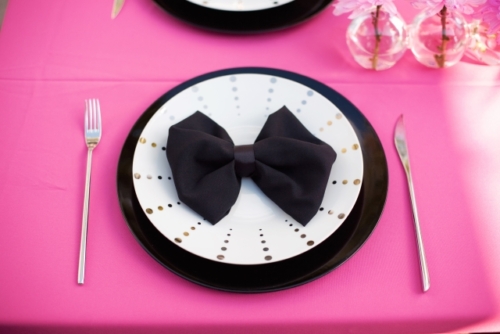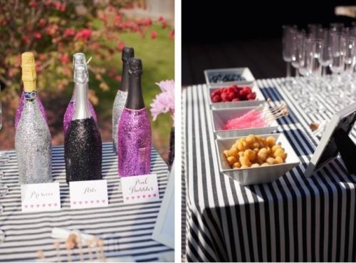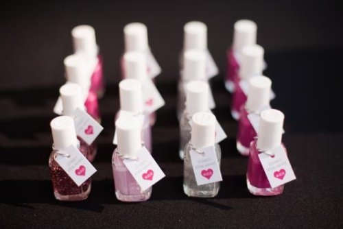 Here is what the even designer had to say: “I had the pleasure of working with Melissa, who threw this very thoughtful shower for the bride-to-be, Lindsay. While chatting with the sweet maid of honor about Miss Lindsay, I realized our love for many of the same things was a match made in heaven. Pink, polka dots and anything stylish…I instantly thought of Kate Spade! A champagne bar was a top priority on the design list. Covering the bottles in glitter was the way to add a bit of sparkle to this already dazzling day. Essie polish is everyone’s favorite guilty pleasure so we chose an array of colors for the girls to choose from, with the most adorable, itty bity, personalized tags. We tied each guest’s napkins into a bow because nothing screams Kate Spade like a pretty bow. We also made sure Lindsay had all her favorite foods on the menu for the afternoon including, sushi, Panera mac and cheese, and Caesar salad.”