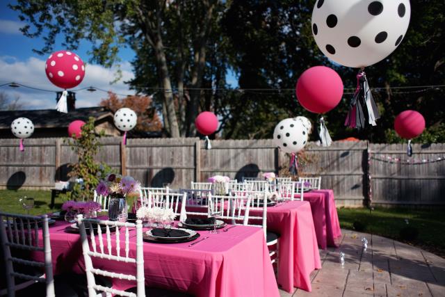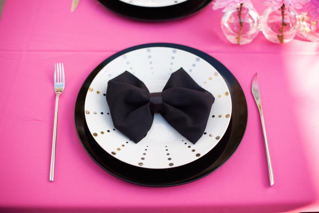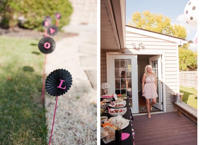 Here is what the even designer had to say: “I had the pleasure of working with Melissa, who threw this very thoughtful shower for the bride-to-be, Lindsay. While chatting with the sweet maid of honor about Miss Lindsay, I realized our love for many of the same things was a match made in heaven. Pink, polka dots and anything stylish…I instantly thought of Kate Spade! A champagne bar was a top priority on the design list. Covering the bottles in glitter was the way to add a bit of sparkle to this already dazzling day. Essie polish is everyone’s favorite guilty pleasure so we chose an array of colors for the girls to choose from, with the most adorable, itty bity, personalized tags. We tied each guest’s napkins into a bow because nothing screams Kate Spade like a pretty bow. We also made sure Lindsay had all her favorite foods on the menu for the afternoon including, sushi, Panera mac and cheese, and Caesar salad.”“The guests played a few games including “Whose Facebook post, Lindsay or Bill?” This was a favorite among the guests. And what event would be complete without it’s own hashtag? Putting it on the back of the envelope of the invite and a framed sign at the party encouraged the girls to document the day with #lovelylinds.Towards the end of the shower, the ladies all traveled to a nearby park with the photographer for a super cute photo shoot. Lindsay was able to get photos with all of her girlfriends, her bridal party and some solo shots with our massive, tasseled, polka dot balloons.Finally, everyone released the balloons to celebrate Lindsay’s final days of being a single lady!Gallery