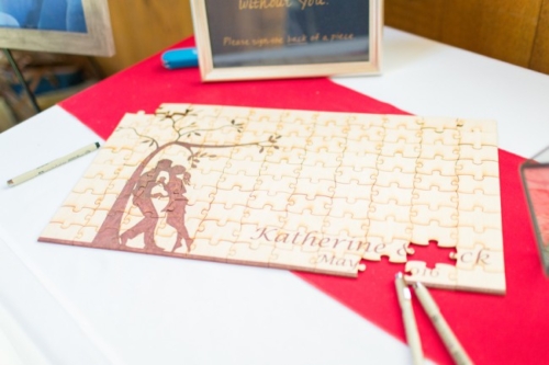 Love the unique guest book alternatives! The sign reads, “Our puzzle wouldn’t be complete without you. Please sign the back of a piece.”