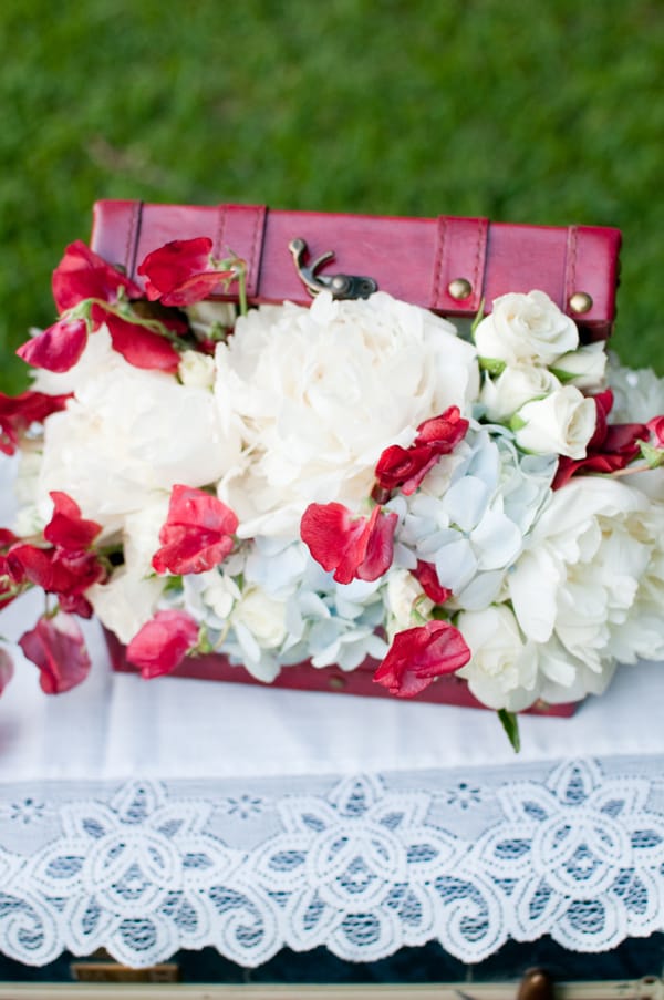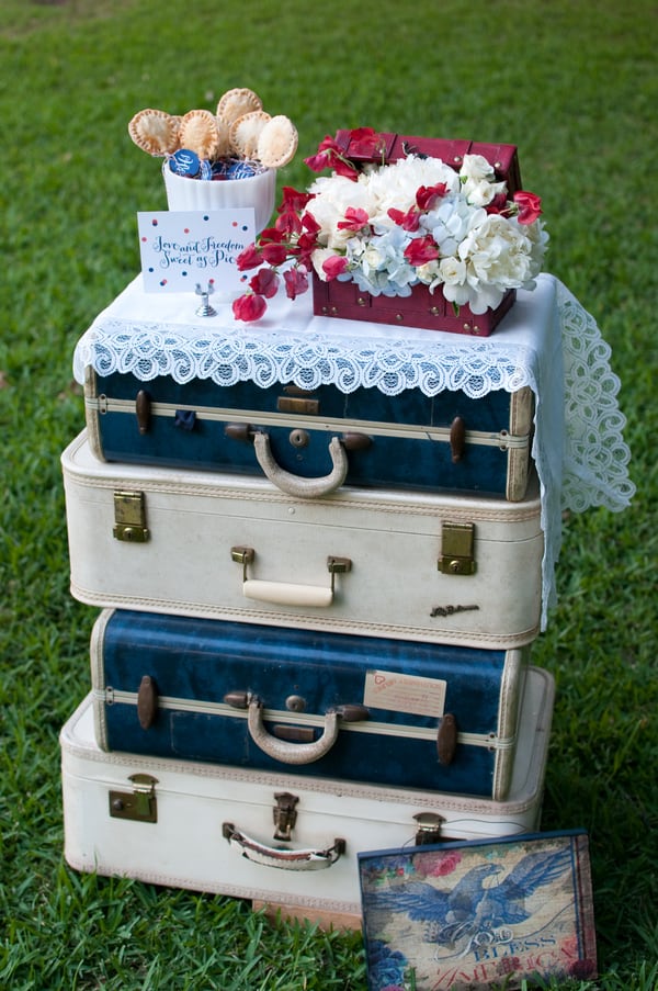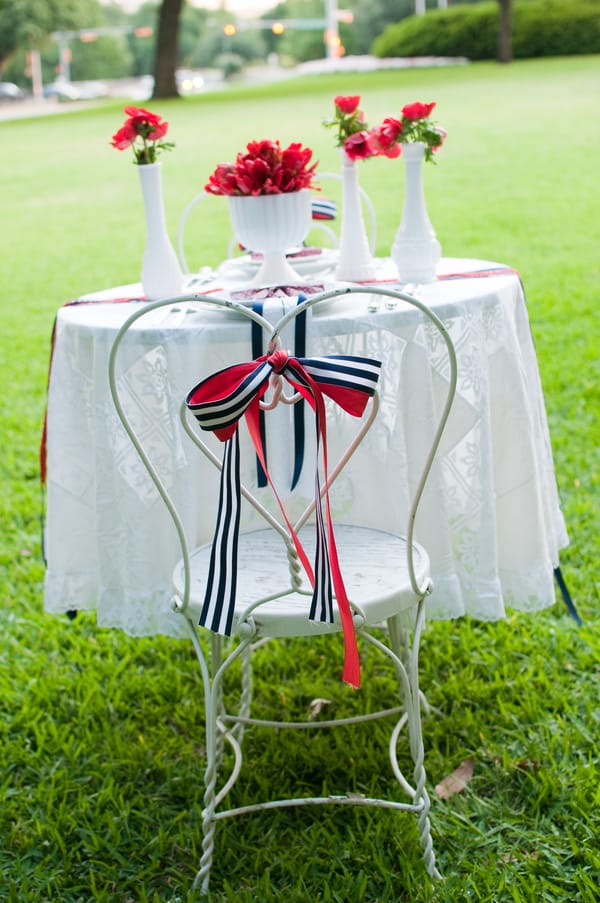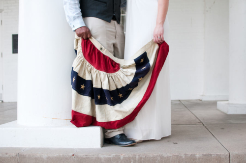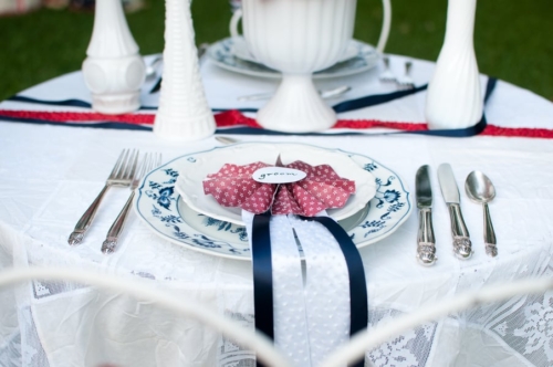 Jen Rios Designs Remarks: “This shoot started with the fantastic vintage flag bunting that Lisa of Period Charm Rentals found in February and faithfully held onto until we were ready. Once Catie approached me about providing design & styling for the shoot I chose to use the bunting as inspiration.