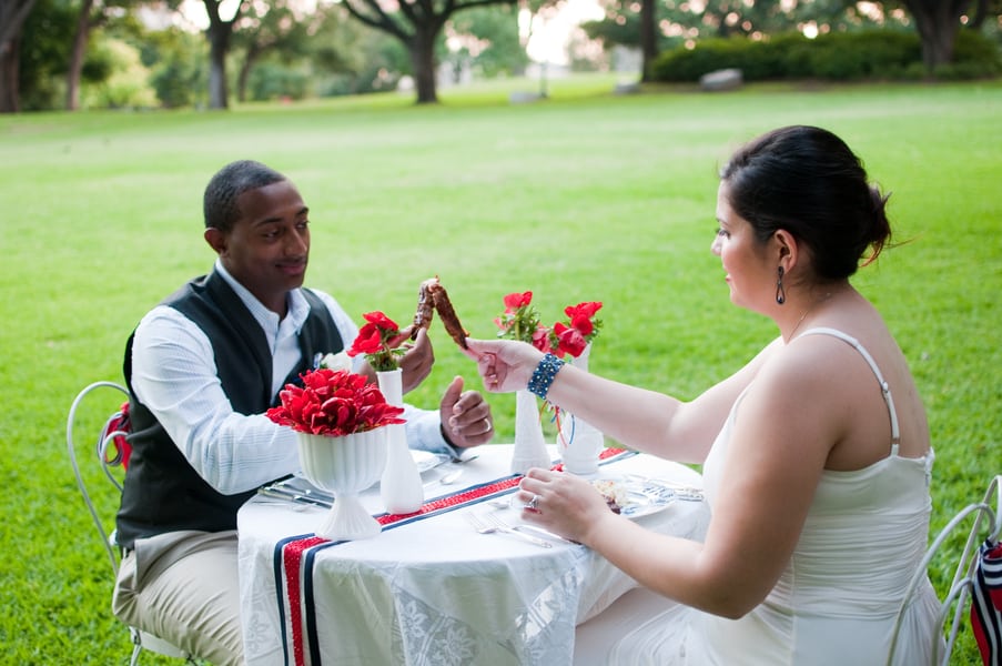 “We used a perfect white bistro table from Period Charm Rentals for the couple to have an intimate dinner for two.”