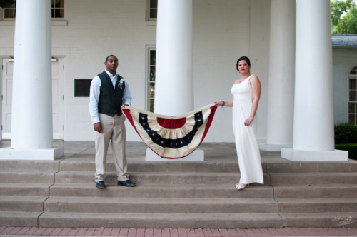 “I wanted the patriotic scheme of red, white, and blue to be more muted than your typical bright hues. Once I had decided on that the rest really fell into place. Lisa has a great stock of items that fit right in. Catie Ronquillo, our photographer, had the perfect couple in mind and boy was she right!