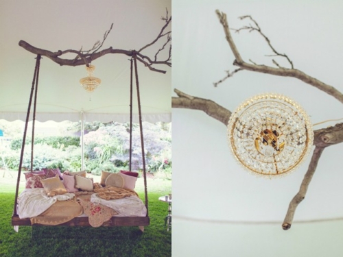 “I love the flowers we had! Â Everything just felt like home, and the dome chairs and bed swing prevented it from feeling like any wedding banquet hall.”