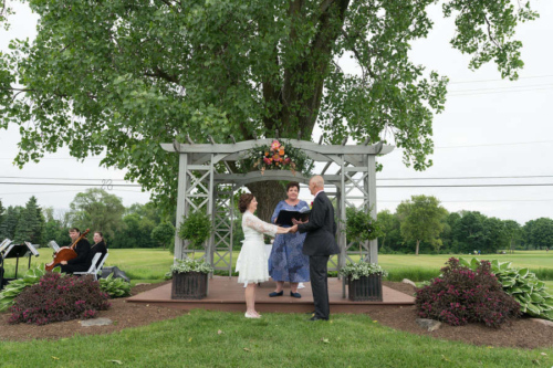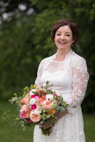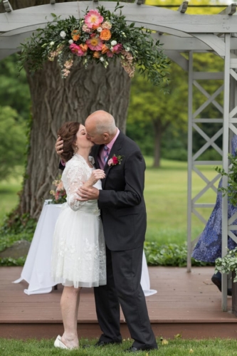 Photographer’s Comments: “This adorable couple met in a cycling club – they’ve traveled together and hiked and biked all over the country and world which led to some beautiful details with their photos of traveling all throughout the wedding. They make a great team. This sweet little wedding was amazing – the love for them was so palpable and all the little details celebrating their love for one another were exquisite. They wanted a laid back Sunday afternoon wedding – guests enjoyed a nice lunch, music, games and dancing. Also, isn’t her tea-length dress amazing?!?! What a gorgeous bride!”Gallery