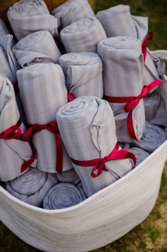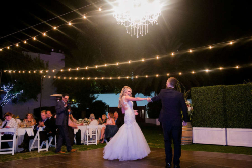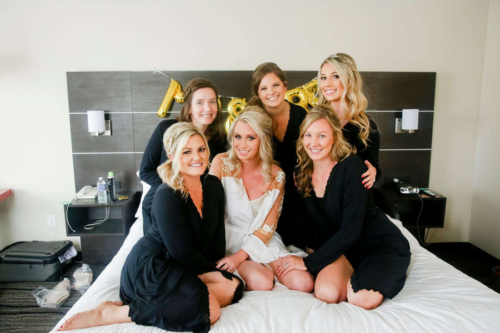 Mondays can be wonderful, Kati and Justin proved by hosting their wedding on one. “Since this was a destination wedding, we wanted our friends to come out and explore San Francisco, Napa and the Bay area for the weekend and then celebrate with us on Monday,” Kati says. The couple met in college at a fraternity party, and after seven and a half years (Kati says she has to throw in the half), Justin proposed. “From there, it was a fun time planning the best Monday ever!” At Wente Vineyards, Kati and Justin wanted to have an elegant wedding without being overly fancy, and they incorporated handmade wooden table numbers created by a friend; plus the couple made their own invitations, place cards and programs. “We found we could really get our humor across making our own invitations versus buying something pre-made,” Kati says. For the wedding’s colors, they chose dark burgundy (matching the cabernet they love at Wente) and blush and white shades, plus a wall of greenery. Kati also points to pink glasses that brightened up the tables as a favorite detail, as well as the chandelier over the dance floor. Kati also fondly recalls shopping for her wedding dress with her mom, and after trying on more than 100 gowns, she found a perfect, customizable dress by Naama Anat. For couples planning their weddings, Kati says, “We gave ourselves almost a year to plan, and we really spent a lot of time researching each of our vendors and all the details, so that we could get the best vendor at an excellent price. I think the key is working with your partner so that you are both happy with the different parts of the wedding – even if the guys say they don’t care, they do!”Gallery
