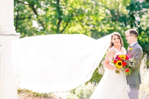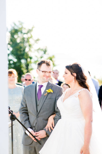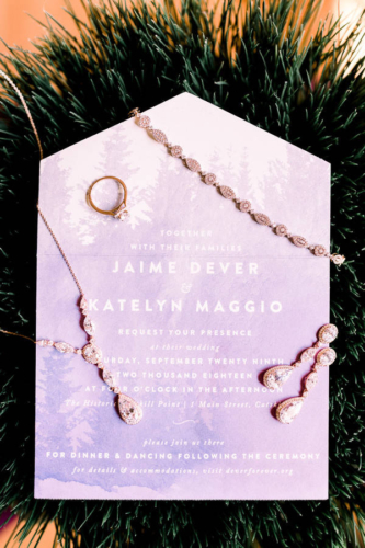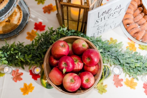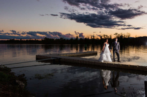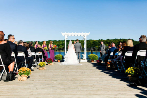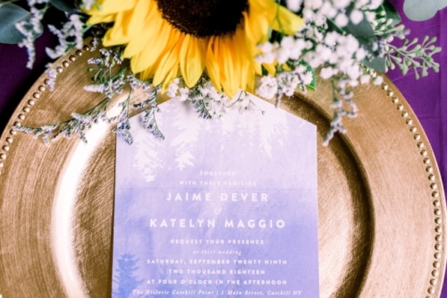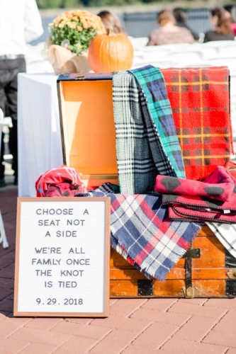 Photographer’s Comments: “Katelyn & Jamie exchanged I dos on the dock at Catskills the Point. This wedding day was filled with cozy accents including a vintage suitcase filled with plaid shawls for guests. “The inside barn was beautiful with string lights and a clean white interior, pumpkins sat in as centerpieces and the pie table was a crowd pleaser. “Their portraits were sun-drenched and everything glowy.”
