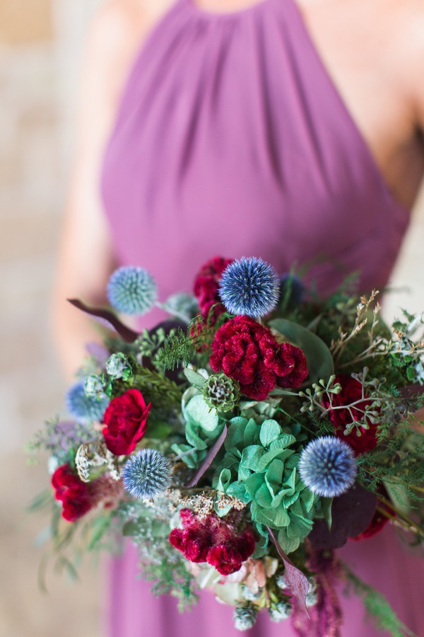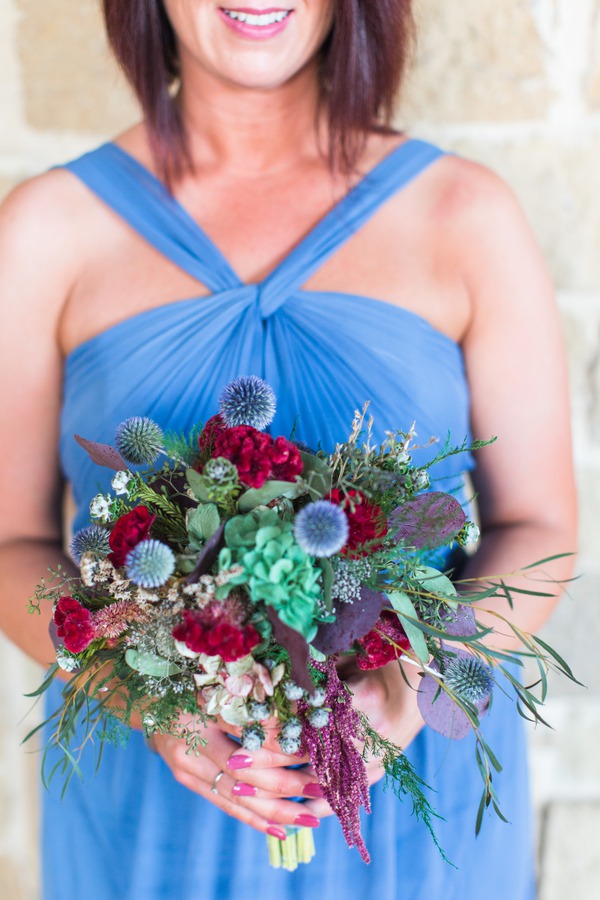 We love how the bride’s powder blue Steve Madden heels pull out the color of the blue thistle bridal bouquets.