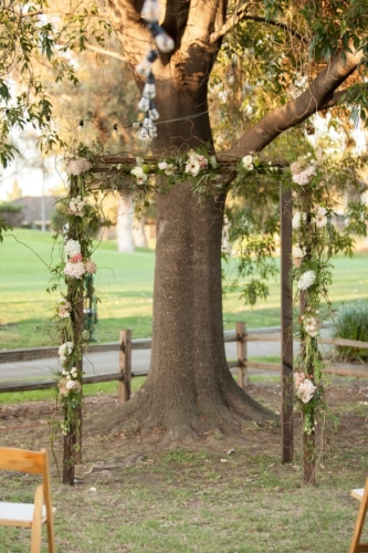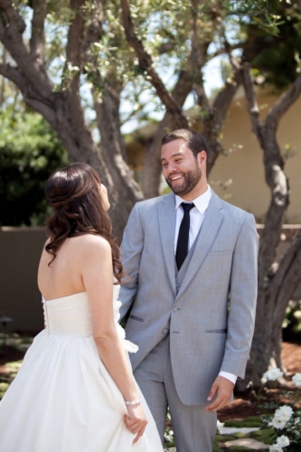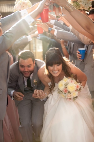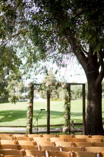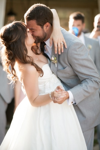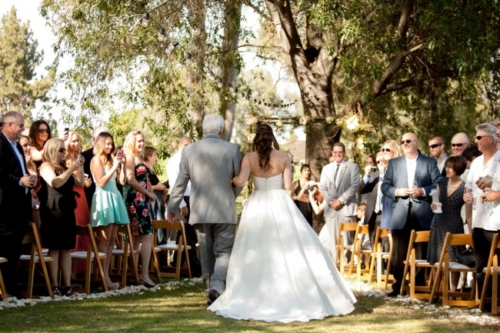 Photographer’s Comments: “Katie & Stephen were married in the bride’s parent’s gorgeous backyard in Lakewood Country Club, which backs onto Skylinks Golf Course. The arch was handmade by the groom himself, lights were hanging from the trees, and tables were lined with simple yet beautiful flower arrangements in gold painted vases. It was a stunning personalized and intimate event to remember.”Gallery