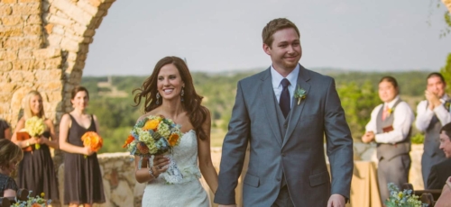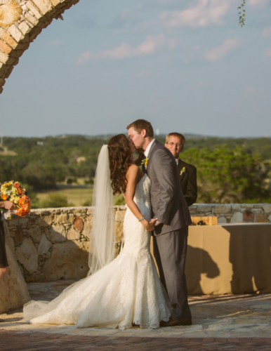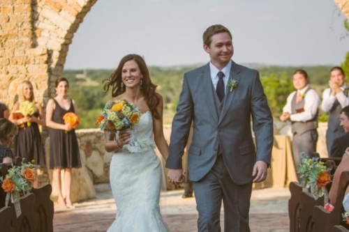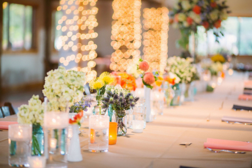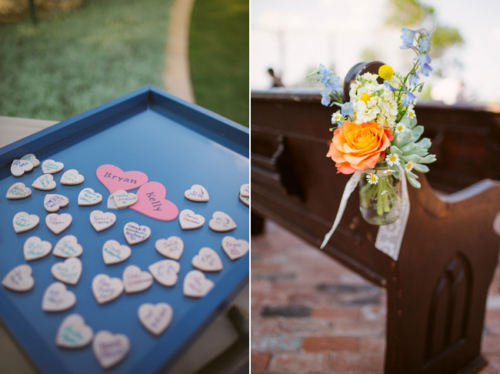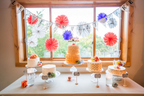 I really like this wedding–it put a smile on my face! I love how there are multiple cakes on the dessert table, how each bridesmaid has a different type of flower in their bouquet, and I LOVE the centerpieces.