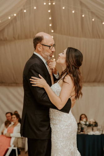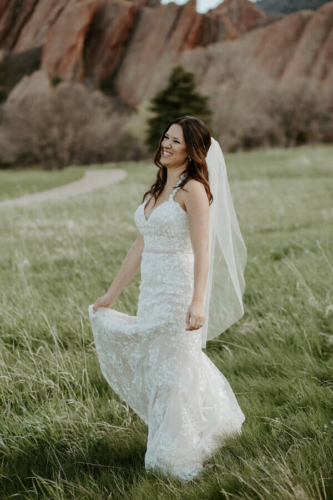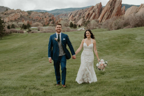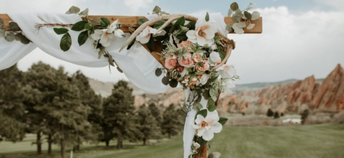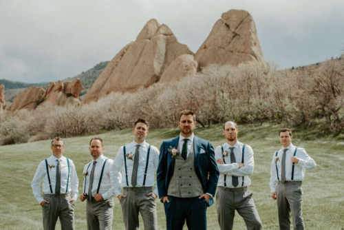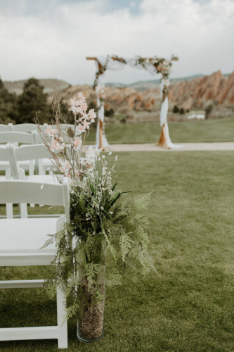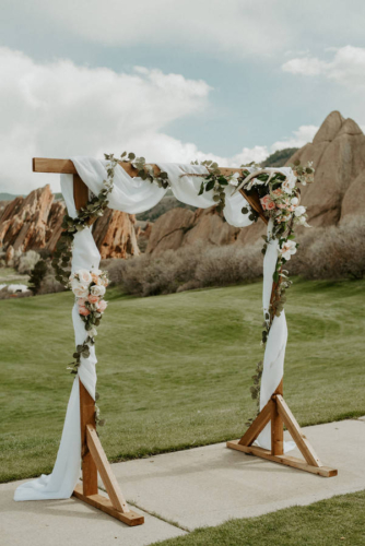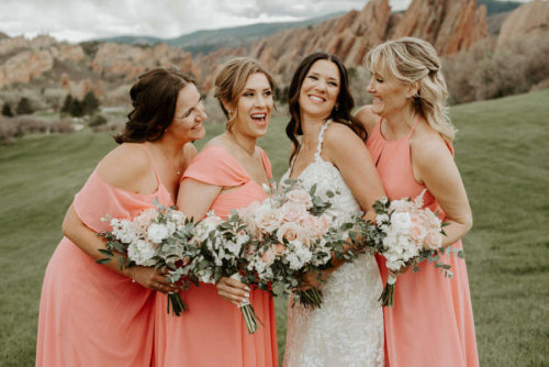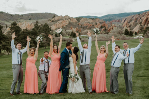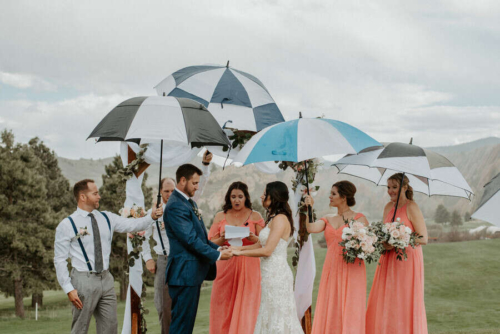 Photographer’s Comments: “Kelly and Dan planned an intimate spring wedding in Colorado – where they met and fell in love. Arrowhead Golf Club was the perfect backdrop for their ceremony, where they stood under a beautiful arch built by Dan. “As their ceremony began, so did a true Colorado spring rain storm. Umbrellas were passed around to guests and the wedding party came together to cover the bride and groom.”Gallery