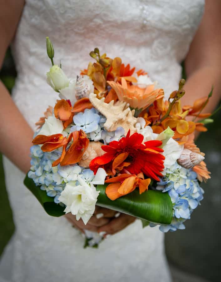 Photographer’s Remarks: “The groom is an avid fisherman and the bride is a marine biologist, so of course their wedding had to reflect that – they said their I do’s on the sand and danced the night away at Sea World and enjoyed some shark, orca, penguin and sloth encounters along the way. “They used a beach color palette with blues and whites with a bit of orange and some sea shells mixed in. The bride and groom have known each other since high school so the vibe was fun and filled with laughter.”