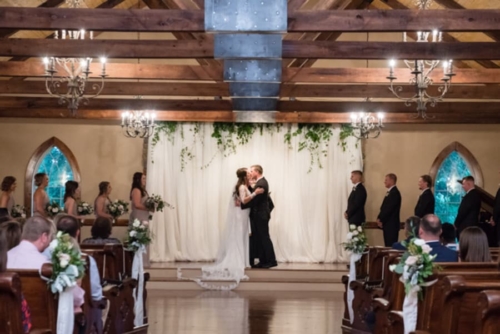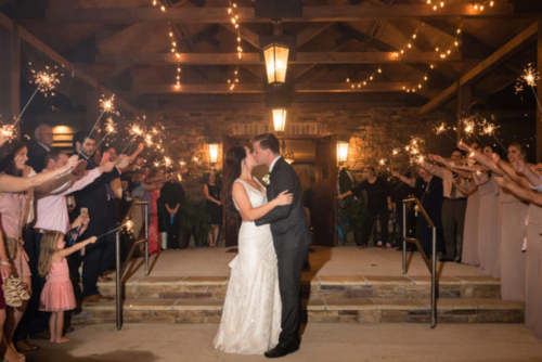 Photographer Comments: “Jesse and Kendal celebrated their wedding day with a rustic chic soiree in Cullman, Alabama, just north of Birmingham, The pair met in high school and attended Friday night football games, homecoming dances and movies together, but they parted after graduation. Flash forward to 2015, Jesse is a firefighter and Kendal a wedding planner, and they came together again. In June 2017, they made it official, marrying at the bucolic Stone Bridge Farms in Cullman, Alabama. “With lots of wedding expertise, Kendal says it was hard to decide what to do for her wedding, while knowing  she wanted a romantic ceremony and a fun reception. “I focused more on light, airy colors,” she says. “I think less is more for certain things at weddings.” Jesse’s mother contributed material from his baby baptism gown for the wrap on Kendal’s bouquet, along with a beautiful poem about passing on this cherished heirloom. The couple enjoyed a fireworks show with their guests at the end of the reception, and they left in a vintage fire truck, a nod to Jesse’s profession. “Kendal advises couples planning their weddings to relax. As he says, ‘Don’t worry about the small things. It’s good to find the things that are the most important to you and focus on those. Near the end of my planning, I decided to focus on what was the most important to me, which was how I could spend time with Jesse and my family on wedding day.’”
