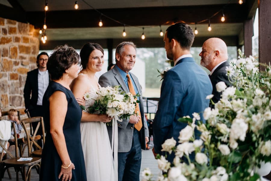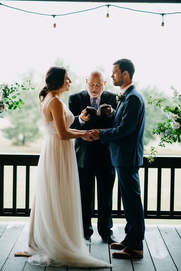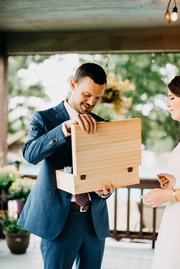Q1: Tell us about your wedding! “Tyler and I talked a lot about how we wanted our wedding to feel and what we wanted our experience to be. We had both been in our fair share of weddings, so we knew how stressful a traditional, big wedding could be. We decided to have a family only ceremony (immediate family & grandparents) with 2 receptions (I’m from Houston, he’s from Tulsa). Our main inspiration was to goal/inspiration was to be relaxed and actually experience the day with the people we love the most!” Q2: Let’s talk wedding decor “Tyler’s parents have 20 acres of land outside of Tulsa. When we had just started dating, Tyler took me on a tour of his parents land. Along the side of their property, Tyler’s dad planted a couple rows of pine trees (when they first bought the property!) and they now are 20+ feet tall and make a beautiful arch. I told him “wow, this would be a beautiful place for a wedding”. A few months later, our plan was to be married under the pine trees. We decided to let the beauty of the trees be the main decor. We had 3 large bouquets of flowers to frame where we would stand (“the alter”) and that was it!” Q3: What were the florals like in your wedding? “We used 3 large bouquets to frame where Tyler and I would stand (or the alter). Tyler’s dad made us stands for the bouquets out of tree stumps. We stuck to simplicity with white and neutral flowers.” Q4: Did you personalize the day in any way? “Since we did a family only ceremony, we did not have a wedding party. In stead of gifts for our wedding party, we gave gifts to everyone in our family. “For the guys, Tyler have them all a Yeti koozie. I gave Tyler’s mom and sister (and myself!) a bracelt with the letter ‘P’ in Morse Code to represent our new shared name. I gave my mom and sister a ring with three stones to represent all of our different last names, but shared family roots. “We gave the grandparents a picture frame with their wedding photos from each generation in the family. Lastly, we gave our niece and nephew some new books. We also placed handkerchiefs on the seats of our parents and grandparents that said, ‘for happy tears’.” Q5: Let’s talk fashion “I was actually between two wedding dresses up until a few weeks before the wedding. Tyler and I realized we hadn’t put his outfit together, and once we did it solidified my decision. Tyler (and consequently my) outfit was centered completely around his shoes. All he wanted was to wear his Johnston & Murphy canvas, wingtipped shoes. And he did. And we both were very happy!” Q6: How did you meet? “We were actually set up by some mutual friends! We were both extremely doubtful of the set up, but after Tyler did a Facebook creep and I was told he was a feminist, we decided to give it a shot. After we met, we went on a date the same weekend and the rest was history. Tyler and I had many conversations about marriage before we decided to get engaged. But just like every other decision in our relationship, we made the decision to get engaged together. We went to the jewelry store together and bought the ring together. Tyler formally proposed to me on our couch on a week night. Nothing special, just us. And it was all we wanted.” Q7: What was the most anticipated or special moment of your wedding day? “It rained all day on our wedding day. We were supposed to get married under the pine trees outside at Tyler’s parents house. “I think the most special moment (unexpectedly) was arriving at his parents house and seeing the back porch set up for the wedding. I distinctly remember Tyler’s dad asking if I thought it would work. The whole family was prepared to stand in the rain, under the pine trees—if I wanted! “I could have cried seeing how beautiful the back porch was. I believe my exact words to Tyler’s dad were, ‘how could I not be happy with this?’. And we got married on the back porch. “Now every time we go out to his parents house, we get to stand at our wedding venue and we love it.” Q8: Do you have any wedding planning or marriage advice that you’d like to share with other couples planning their day? “Do what’s best for you! Tyler and I decided to do a family only ceremony and then receptions. I was slightly concerned we would receive some negative feedback for this choice, but we only received praise for it! Married couples and our families commended us for the decision, and commented that they wished they had done it that way. In the end, we are so, so happy with how our experience turned out!”Gallery