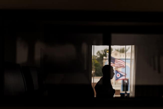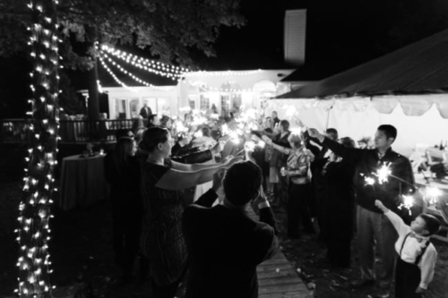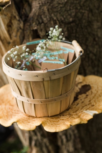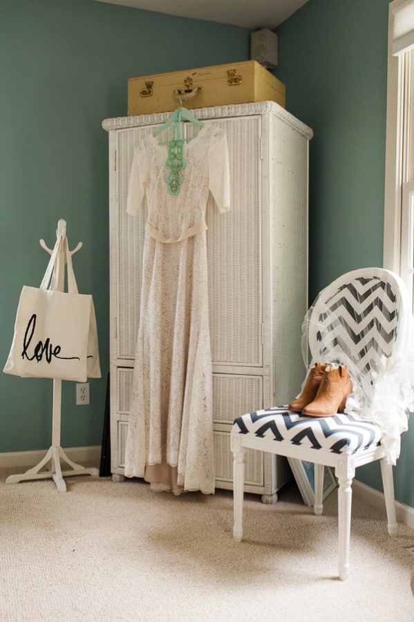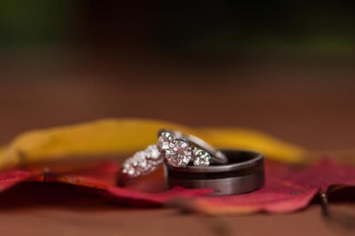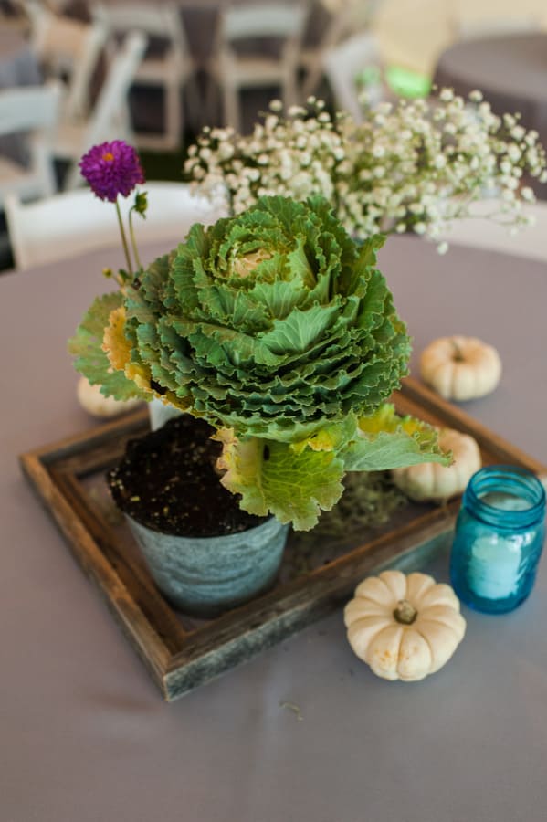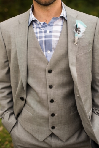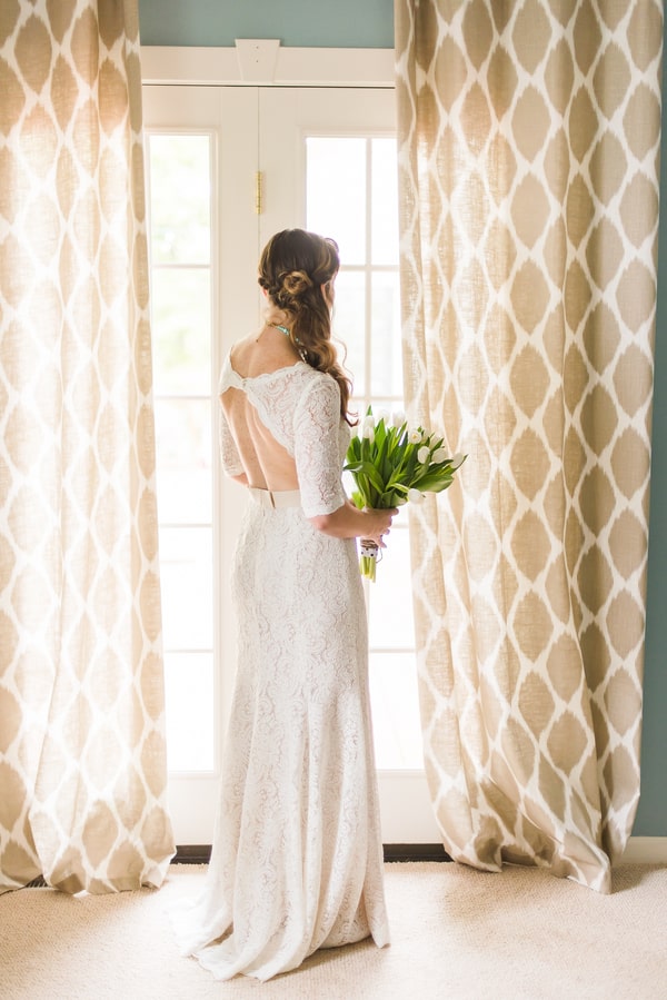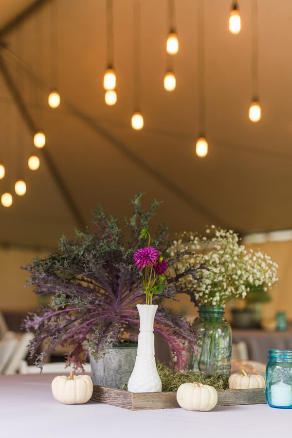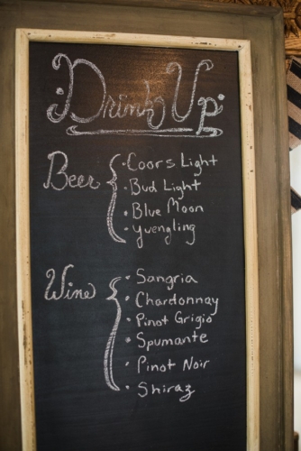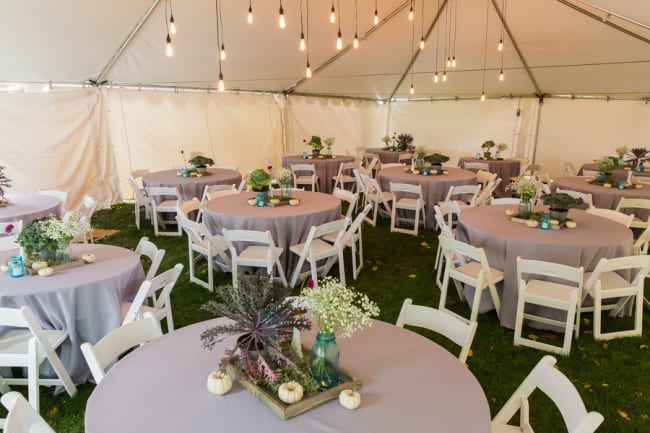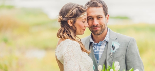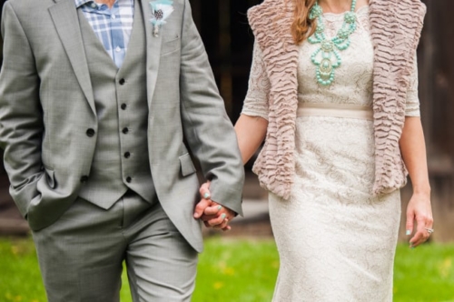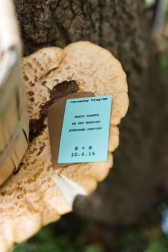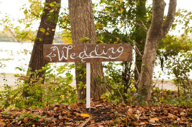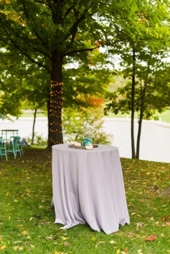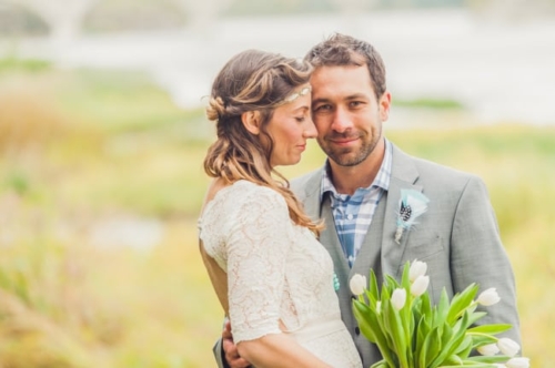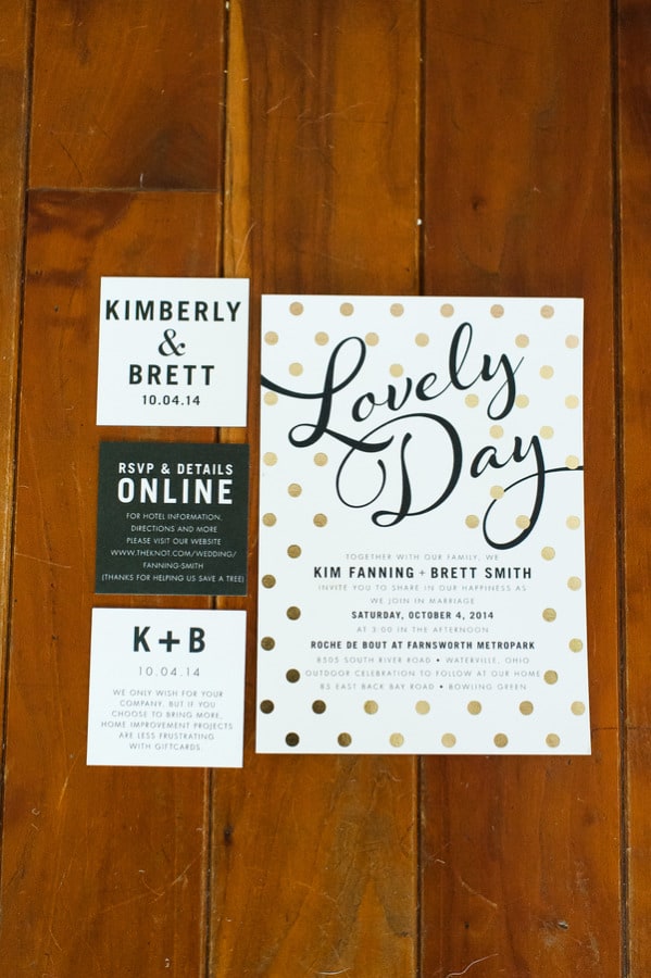 From the bride: “We wanted to keep the celebration simple, relaxed, and true to our taste & personalities. We are both laid-back, enjoy nature, appreciate good whole food, and don’t need a lot of fan fair surrounding us. We knew we wanted a intimate ceremony with only our immediate family. We picked our favorite spot by the Maumee River. It overlooks Roche de Bout, a limestone island that dates back to the 1700’s as a meeting place for Indian tribal councils. It also has a magnificent view of the old abandon Interurban Bridge. After our wedding ceremony, we wanted a small backyard celebration with our closest friends and family. We were hoping to allow our guests to enjoy our home & beautiful waterfront backyard. Unfortunately, the weather on our day was anything but beautiful. It even hailed 2 hours before the ceremony! We ended up getting a tent and heaters. Everyone bundled up, but we still had the most wonderful night. We wanted the food to reflected our taste as well. The chose a pig roast by Deets BBQ and catering by Cynthia’s Catering. Our friends said it was the best food they ever had. Roasted root vegetables, corn & grit casserole with cheese & bacon, mashed sweet potatoes, kale salad, tartlets with brie, Apple, & caramelized onion, & mini risotto balls filled with butternut squash, sage & goat cheese. It was all delicious. Red wine, sangria, & seasonal craft beer also helped to keep us warm.”