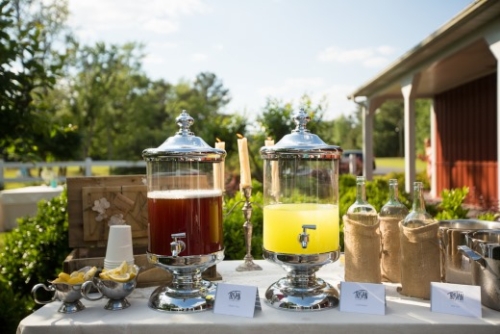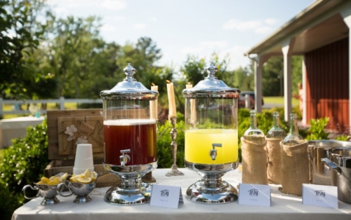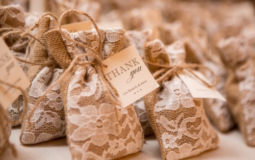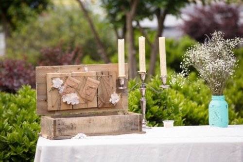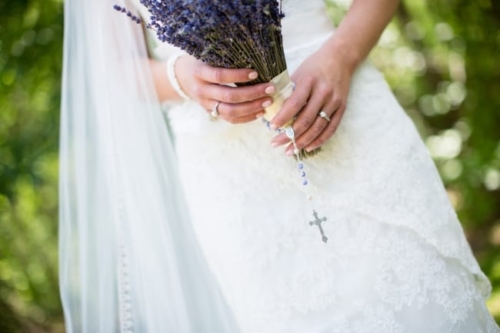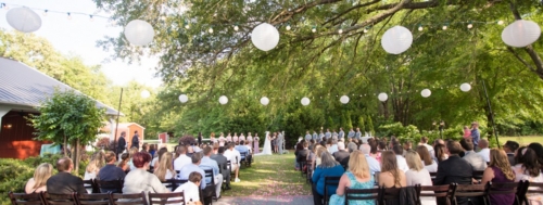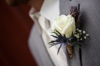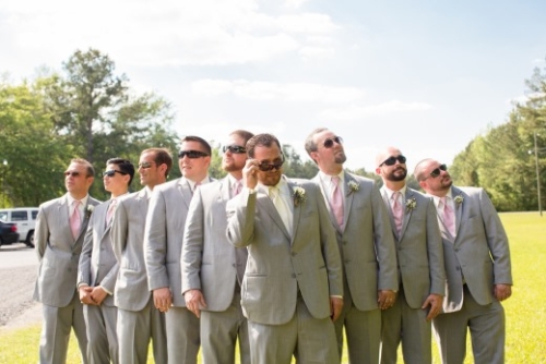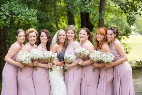 The bride was gorgeous in a white lace tiered mermaid wedding gown and her groom in a smart grey suit. Their looks paired well with the lavender and lace colors and all the event details. The bridesmaids were beautifully styled in pearl jewelry and lavender dresses and groomsmen in complimentary grey suits with lavender boutonnieres. The flowers and bouquets were simple but elegant with dried lavender and baby’s breath, add with that the touches of burlap, and twinkling white globe garden lights it gave the whole affair that perfect outdoor, natural, and country flair.