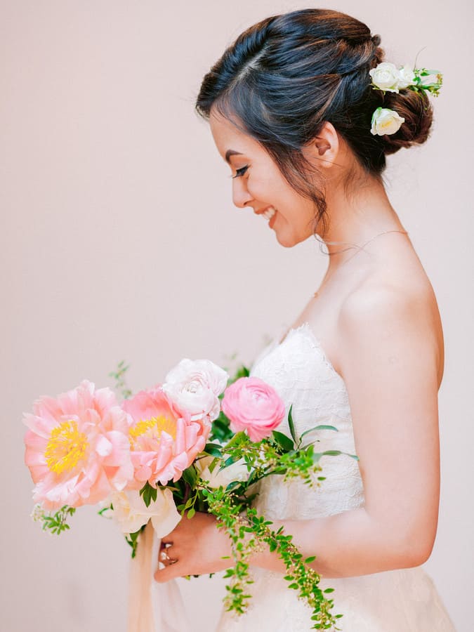 We wanted the floral design to look and flow organically and naturally, almost as though it was arranged by nature and plucked right out of a whimsical garden. The bouquets, bouts, centerpieces, church, and reception backdrop and sweetheart table florals were packed with beautiful blooming peonies, garden roses, and rananculus in blush, ivory, and coral and made a beautiful day even more amazing.