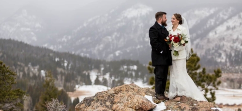 Photographer’s Remarks:“Kirsten and Kurt were dreaming of a white wedding and looking forward to a snowy destination for their big day in Colorado this past weekend. I’m proud to say that Estes Park delivered!