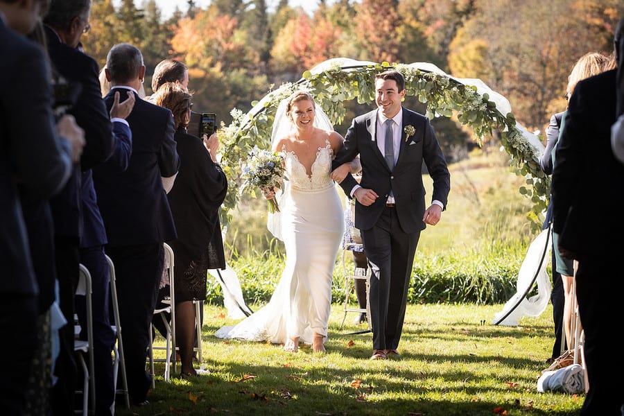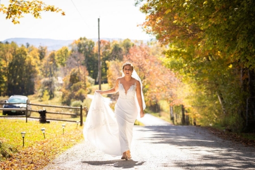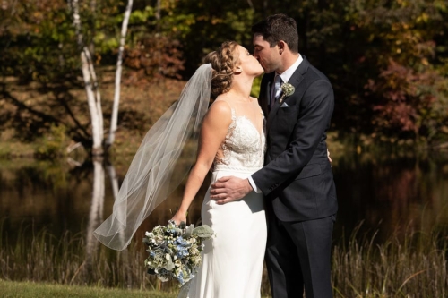 Kristen’s family hails from Connecticut but has always had a family lake house near Echo Lake in Vermont and her childhood is filled with special memories on the lake. It was only fitting that her and Kevin would rent a large lake house for their wedding party in Plymouth, Vermont, and tie the know at Saltash Farm nearby. They got married in October at the height of foliage color. They had their first down on the dock overlooking Lake Echo while their closet friends and family watched from the deck high above and the colors of fall reflected serenely on the lake.