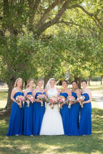 “This isn’t to say that Kristin and Austin’s Pensacola wedding wasn’t gorgeous – it was. The colors were an unusual combination of royal blue and spring pinks and yellows, and the combination was happy and classy. Fiore’s florals were natural and felt like spring-time.