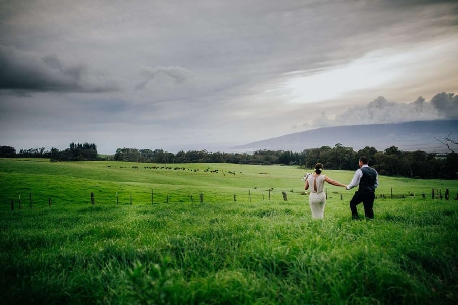 Photographer’s Comments: “I met Laura about 10 years ago. We were on a Calgary Stampede committee together to begin with. Our paths crossed again through our mutual work with Alberta Beef Producers, and then again after I became a full time photographer through various companies we both worked with. I cannot even begin to describe the respect and admiration I have for her; both professionally and personally. Makawao wedding “Then….she met John. “John is one of the most incredible people that I’ve had the honour of meeting since moving to Nanton. He’s steadfast, kind, hardworking and community-minded. “When I got the call asking if I would photograph their wedding in Maui, taking place just after Christmas, I couldn’t have answered back quick enough. “Lori and Jamie from Tropical Maui Weddings provided the planning and music. Seriously, a talented duo. The Ka Hale Olinda was the property for the entire day. It was a spectacular ranch with incredible views. Laura’s gown was made by a designer that has had her pieces on none other than Kate Middleton. Jenny Packham-Esme made the dress that Laura wore and it looked incredible. John and Laura’s rings are all from Hawaii… Na Hoku and Koa Wood. The caterer was Aloha Events. “Just every single detail of their day was perfect. I cannot describe how fragrant their florals were, and how delicious the dinner was and how much laughter was present during the dancing. This was a day that I was truly thankful for being present in.”Gallery