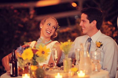 Laura’s dad is a beekeeper and the wedding favors were small jars of the year’s batch of honey. Her dad even ordered little labels with their name and wedding date that read, “Life is the flower for which love is the honey”.