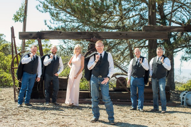 Coupled with a sharp looking vest and necktie, I think the relaxed ranch look works well! Although, the bride and her gals seem to have a much more elegant style that doesn’t quite match. Nonetheless, to each her own — do what makes you feel good and what is right for your day!