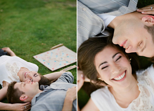 Today’s engagement session was shot by one of our favorite photographers, Caroline Tran! Lauren and Chad are so cute. They showed up riding their red tandem bike and brought their favorite board game–Scrabble! Caroline asked each of them to describe the other in one word and keep it a secret (she wanted to surprise them with these pictures). What a sweet idea! Click here to see more.Gallery