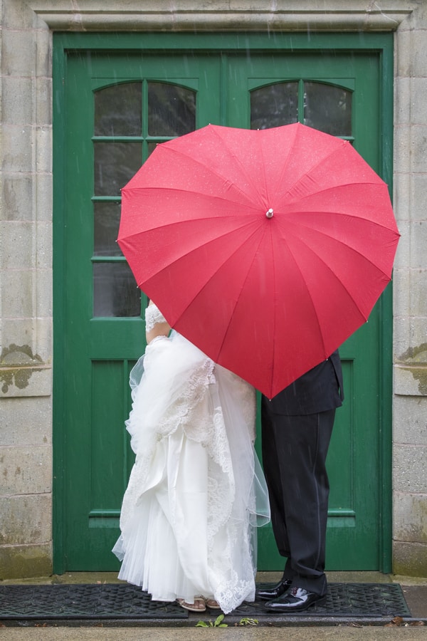 Photographer’s Comments: “Stunning rainy day wedding in Hamden CT. We tried to keep the couple as dry as we could with their heart shaped umbrella.